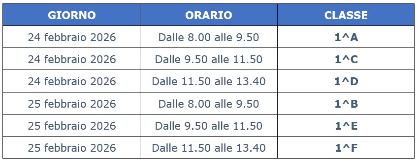 Gli alunni assisteranno alla lezione nelle rispettive classi, nei seguenti orari: