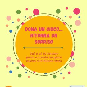 Da lunedì 6 ottobre a venerdì 10 ottobre 2025 i nostri alunni potranno portare a scuola un gioco o un peluche, nuovi o in buono stato, da depositare in un apposito contenitore posizionato nella loro aula o all’ingresso della scuola.